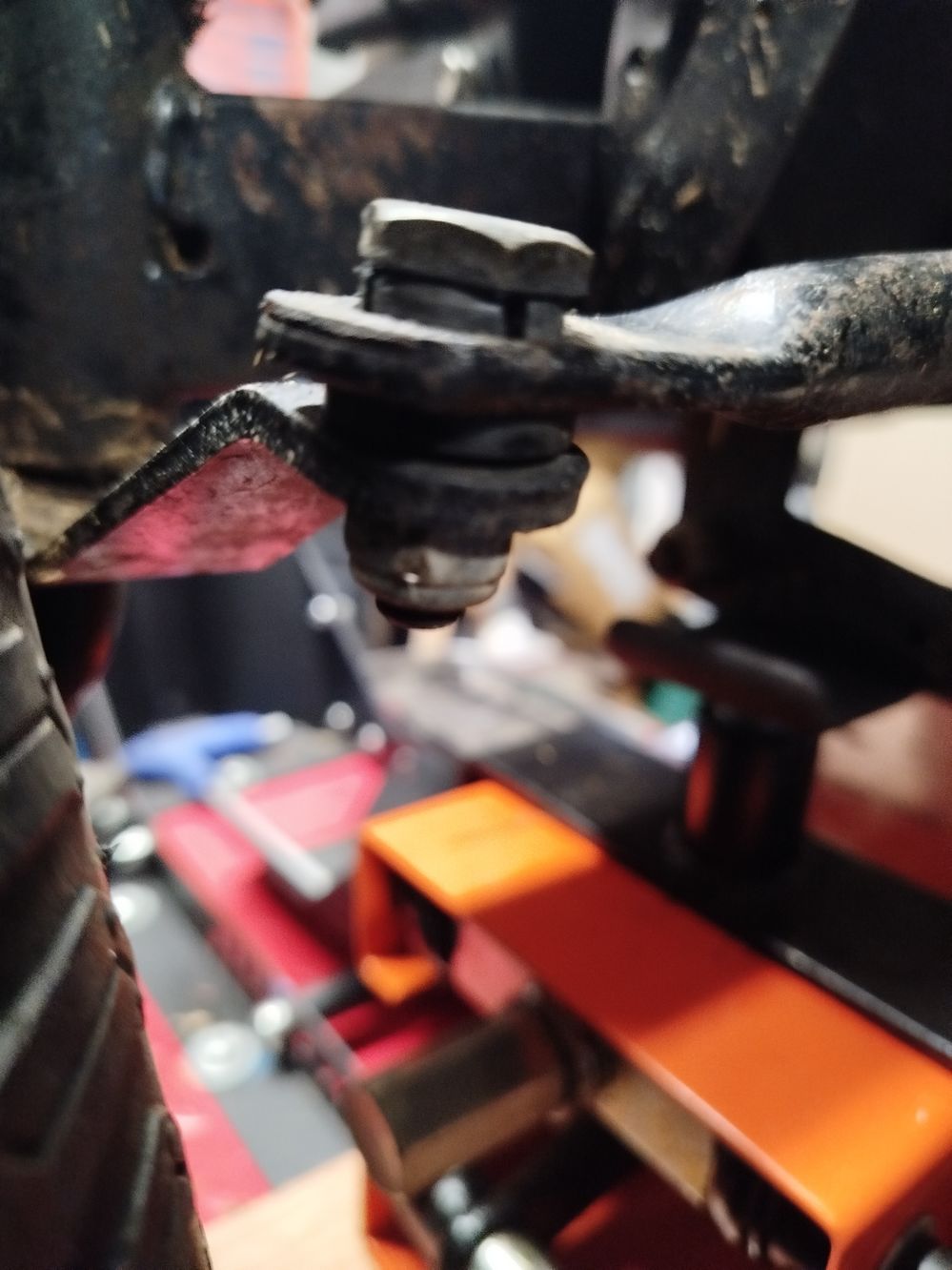 Tracteur tondeuse autoportée radiocommandé | Passage en rotules apportant un parallélisme réglable & un guidage digne ce nom, avant de s’engager sur tracé de la Nordschleife…