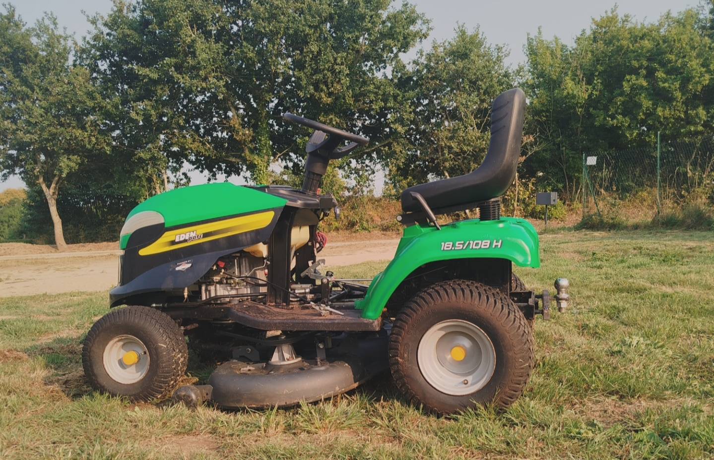 Pour la présentation de ce tracteur tondeuse, il s’agit d’un très classique GGP 108 de 2010, avec une largeur de coupe de 108 cm, particulièrement efficace associé à un moteur Briggs & Stratton INTEK OHV développant 18,5 CV, idéal pour les terrains accidentés. Ce type de tracteur, qui partage une plateforme commune avec d’autres marques comme Club Cadet, Castelgarden, MTD ou Stiga est de conception chinoise et n’est pas toujours de très haute qualité. Exit toutes les pièces de guidage comme les roulements ou paliers, remplacés souvent par des entretoises en plastique…